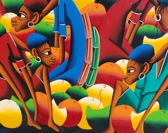 TABLEAU PEINTURE Haïti Antilles fruits tropicaux - Marché Haïtien
