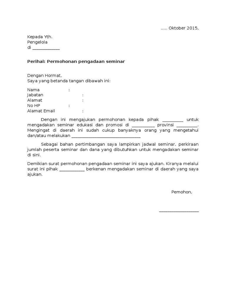 Contoh Surat Permohonan Pengadaan Seminar