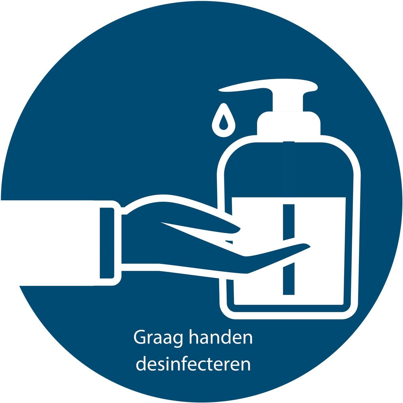 Sticker handen desinfecteren instructie - Instructie sticker tegen corona - Print & Sign Webshops